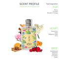 Fiore begins with a radiant burst of peony, blended with the bright zest of citruses and mandarin orange, evoking the freshness of a blooming garden at dawn.